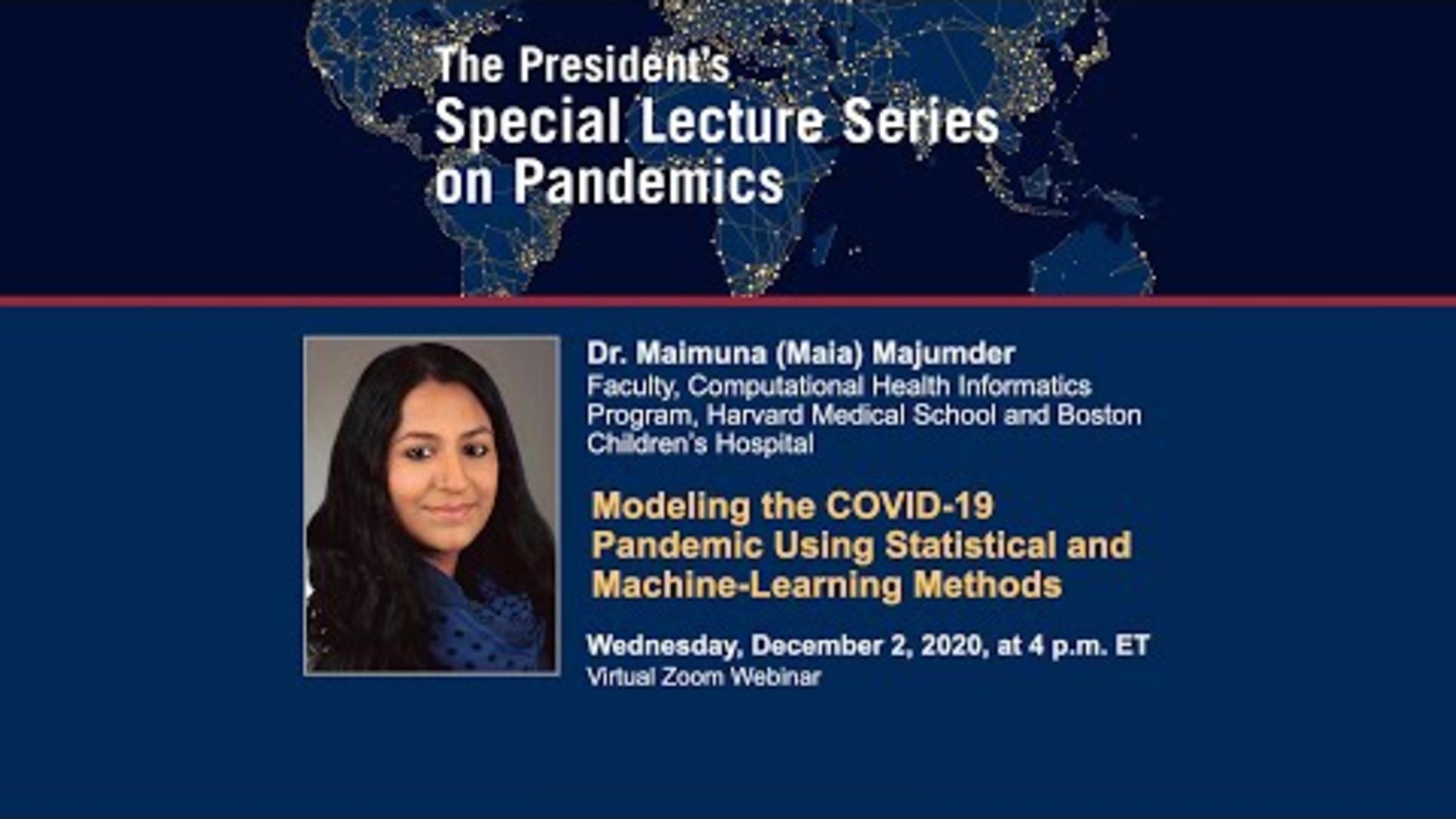 Dr. Maimuna (Maia) Majumder, a computational epidemiologist in the Computational Health Informatics Program (CHIP) at Harvard Medical School and Boston Children’s Hospital, began by explaining how she was part of the team that published the first estimate of R0 ("R naught"), a measure of the rate and speed at which diseases reproduce and spread to others.